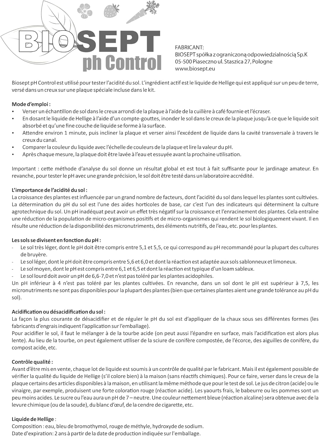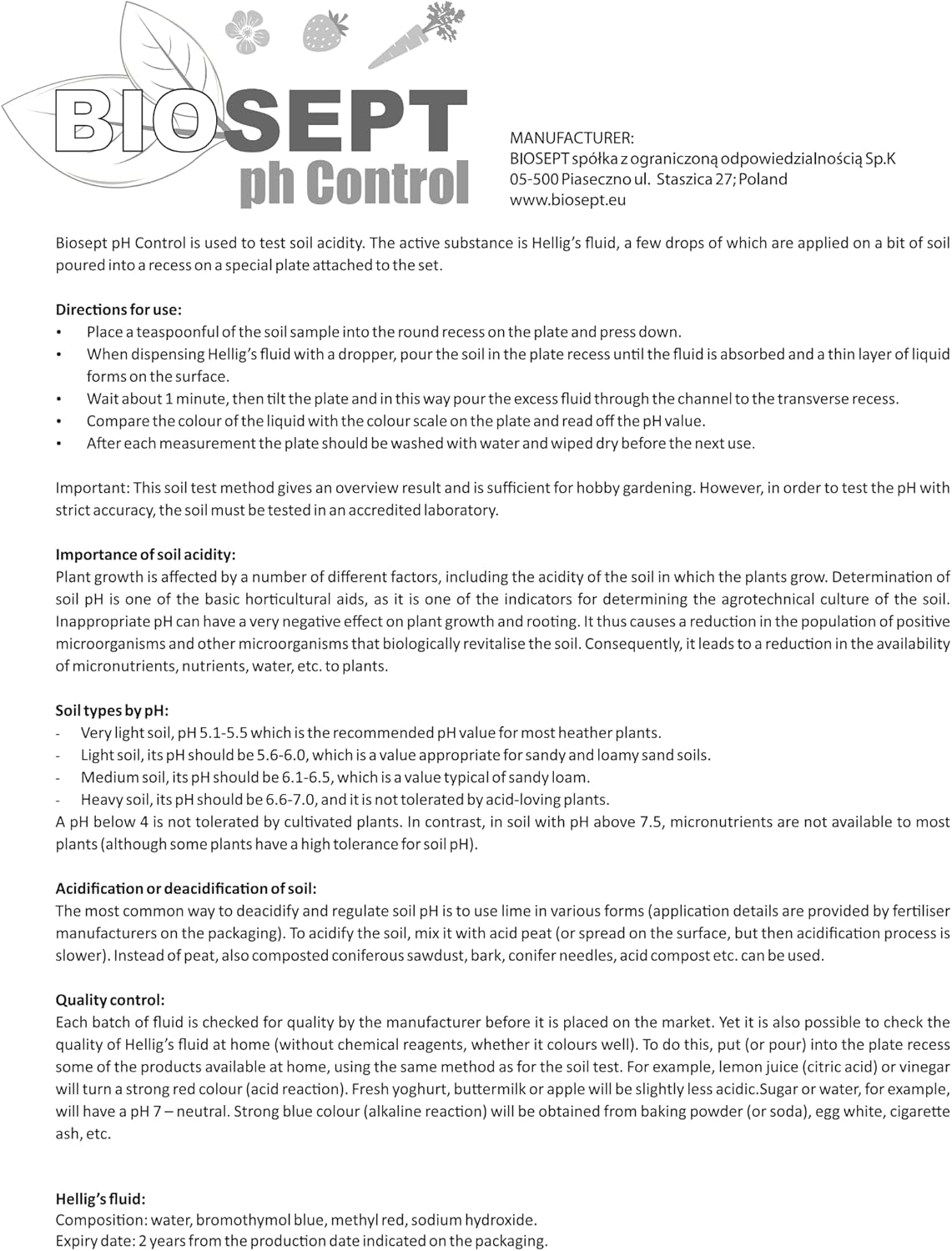 Management de ph bioseptos se utiliza para probar la acidez del suelo. El Principio Activo es Hellig, Cuyas Gotas SE Aplican Unas Gotas de Tierra en la Cavidad de la Placa Especial incluida en el package