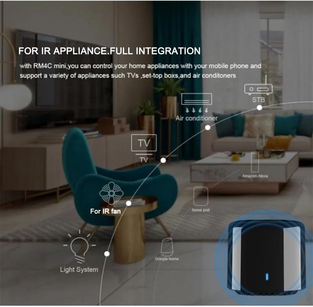 *Compatibilidad normal: El RM4C Mini admite más de 50.000 dispositivos controlados por infrarrojos, lo que permite un management perfecto de su televisor, aire acondicionado y más, todo desde un solo dispositivo.