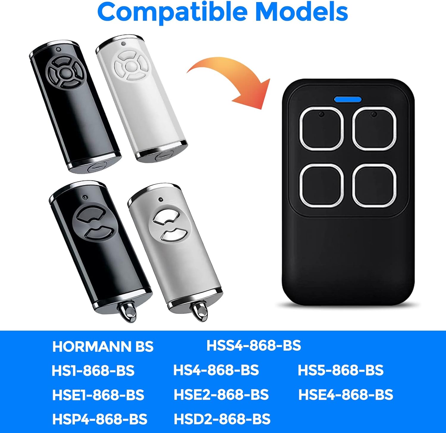 CompatibiliDad: Suitable Suitable en solitario 868 MHz Hormann BS Bisecur Collection, HSE1-868-BS | HSE2-868-BS | HSE 4-868-BS | HS1-868-BS | HS4-868-BS | HS5-868-BS | HSS4-868-BS | HSP4 868-BS | HSD2-8 68-BS