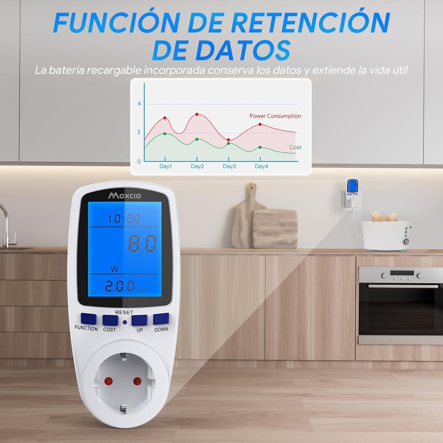 【Memoria de configuración】: El medidor de consumo tiene la función de memorizar la configuración. Incluso si el medidor se desconecta de la toma, guardará automáticamente los datos y la configuración