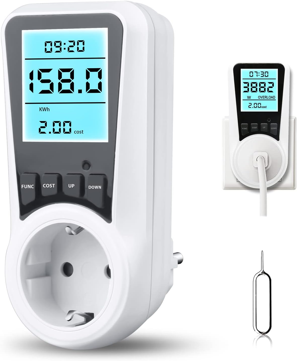 Medidor de consumo Electro, Aicharynic Monitor de ElectriciDad Con Pantalla LCD Retroiluminada 7 MODOS MEDIDOR DE ELCTRICO CON PROTECCIÓN CONTRA SOBRACARGA 3680W