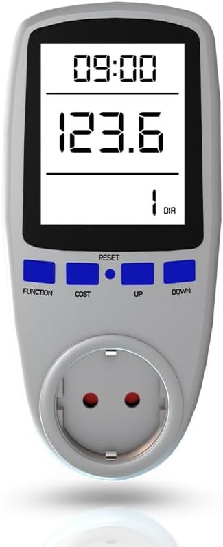 Medidor de Consumo Energético Recargable Con Pantalla LCD Retroiluminada para Fácil Uso. Controla el Gasto Eléctrico y protegido contra sobrecargas, Ayudando un costo de costo reducto.