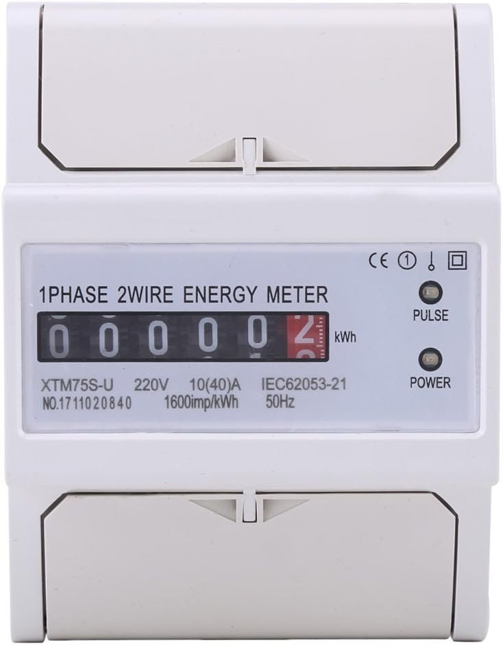 Norma: IEC62053-21 Show: 6 dígitos Colour: blanco Tensión: 220 V Corriente: 10 (40A) Frecuencia: 50Hz Constante de impulsos: 1600 imp / kWh Humedad de funcionamiento: ≤95% Temperatura de funcionamiento: -25 °C ~ + 55 °C Tamaño: 10 x 7.5 x 6.5 cm / 3.93 x 2.95 x 2,55 pulgadas Peso: 276 g Contenido de la caja: 1 x contador de energía