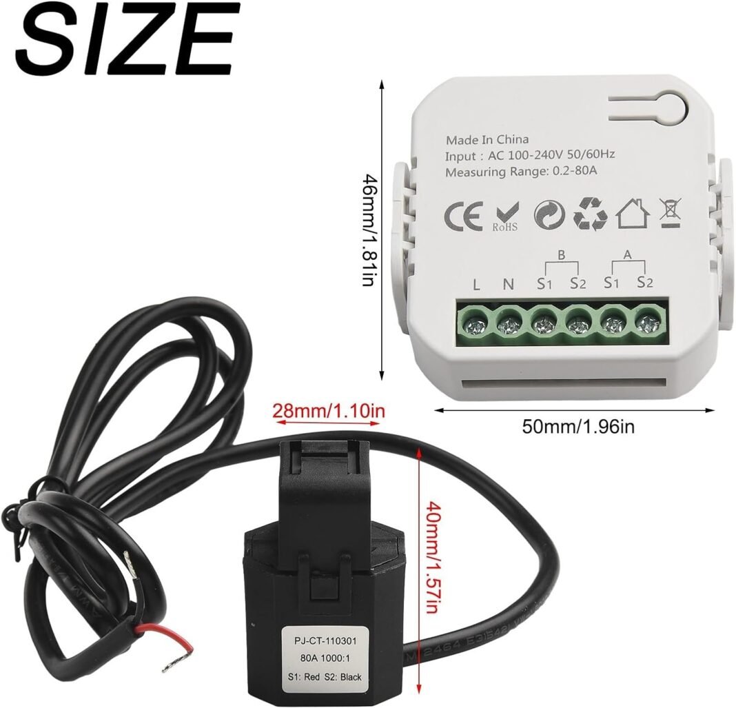 Medición de potencia de doble canal: este medidor de energía inteligente WiFi mide la potencia de los canales A y B por separado, lo que permite una comprensión clara del consumo de energía para cada canal y facilitar la gestión de la energía.
