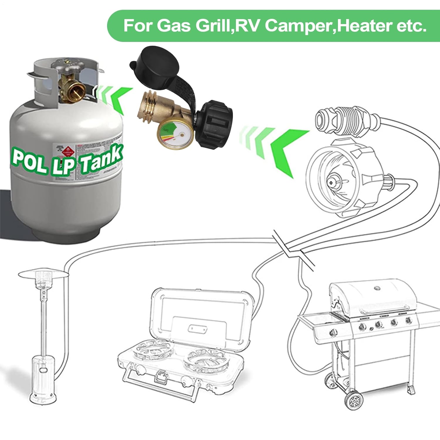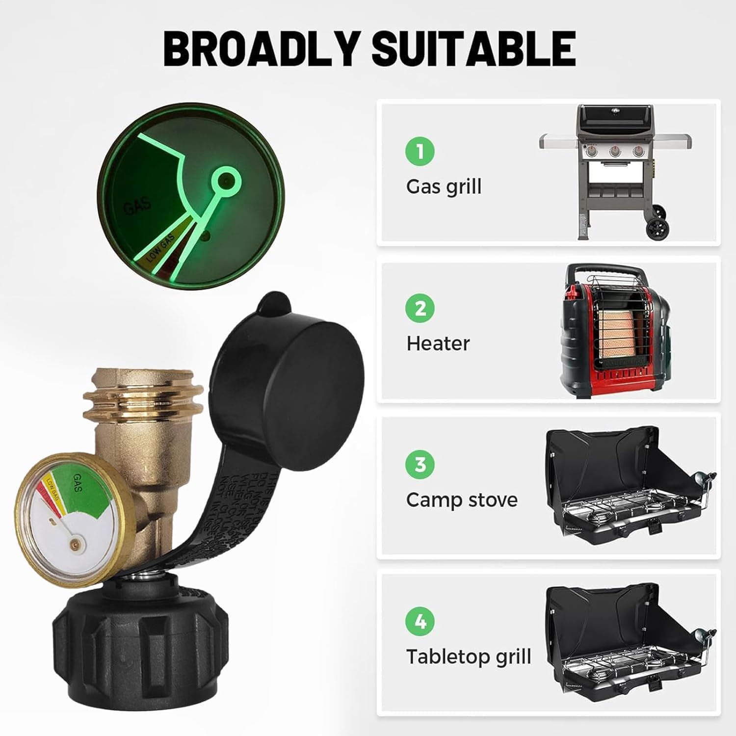Equipado con propiedades resistentes a la intemperie, este manómetro para tanques de propano asegura un rendimiento duradero en entornos exteriores. Incluye un detector de fugas y un medidor de presión, adecuado para cilindros de propano de 2,3 a 18 kg. Best para viajes en autocaravana, campamentos, barbacoas, parrillas en la terraza u operación de calentadores y estufas al aire libre, es una solución práctica para todas sus necesidades relacionadas con el propano.