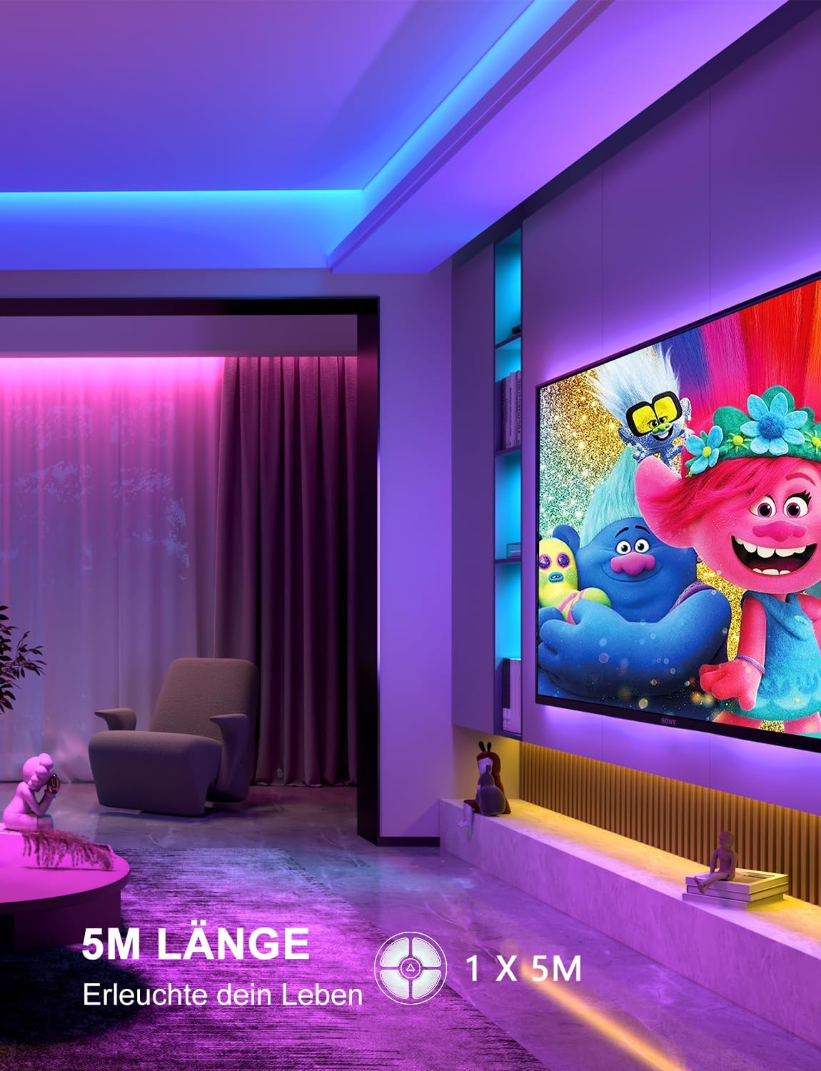 【2 formas de management】Toma el management de tus tiras LED con la aplicación «illumihome» o con el mando a distancia IR de 24 botones. La aplicación completa ofrece encendido/apagado, modos de luz dinámicos, cambio de coloration, modo DIY personalizable, modo música, modo micrófono y temporizador.