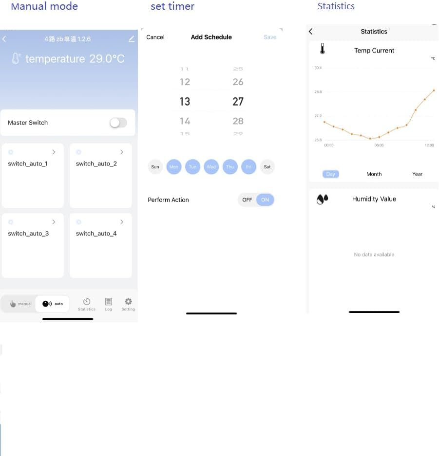 Encendido/apaguado remoto 4 dispositivos individuales o Juntos por teléfono: Enciende y apaga los dispositivos Eléctricos desde Cualquier Lugar, Cuando la Temperatura del Ambiente Caiga Caiga Dentro del Rango, Encenderáá y Apagará Auticamento el Aparato y Addirtirá Rango de el Temperatura de Temperatura de Temperatura, preestablecido, También Puedes Controlar El Consumo Diario de Energía en Tiempo Actual por la Aplicacia Tuya Good Life.