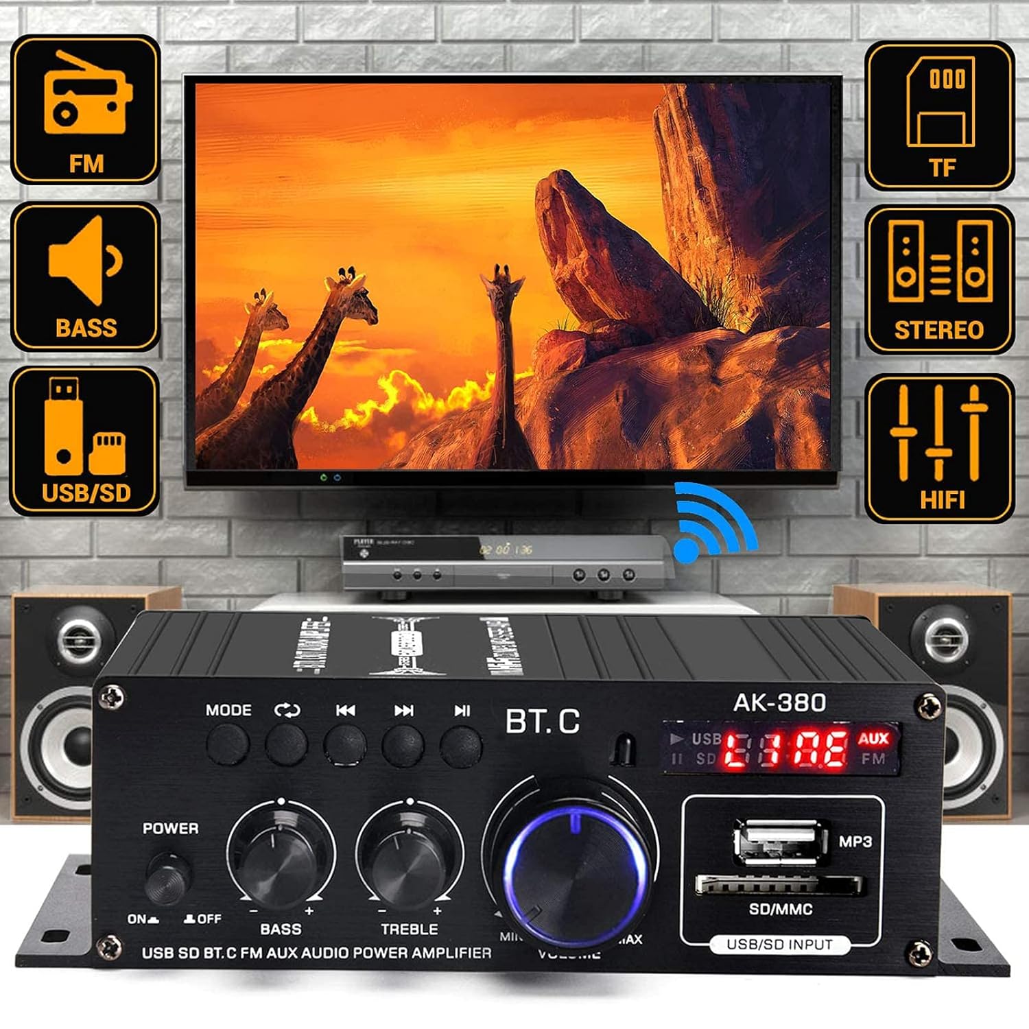 【Entrada de Tarjeta USB / SD】 Bluetooth Amplificador Audio, ¿puede puede reproducir música sin pérdidas a Través de la Entrada USB (por Ejemplo, Conexión A Una Computadora? No se Requiere la Instalación del Controlador). Te Sorprenderá la Calidad del Sonido. Es muy conveniente Insertar La Tarjeta USB / SD para Reproducir Música Directamento.