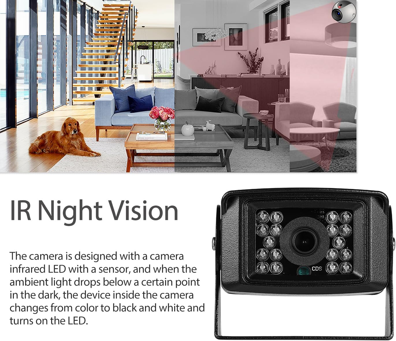 〖IP65 resistente al agua y visión nocturna〗La cámara es resistente al agua IP65. Incorpora 18 LED IR, proporciona un ángulo de visión de 80° y visión nocturna infrarroja de 10M, puede funcionar en diversas condiciones climáticas y también puede brindarle imágenes claras en la oscuridad.