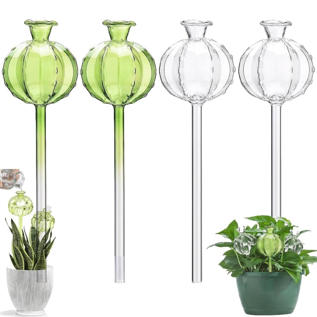 Mknzome Globos de Autorriego, Sistema de Riego Autico de Vacaciones Con Estacas para Plantas de Inside Y Exterior Para Plantas en Casa
