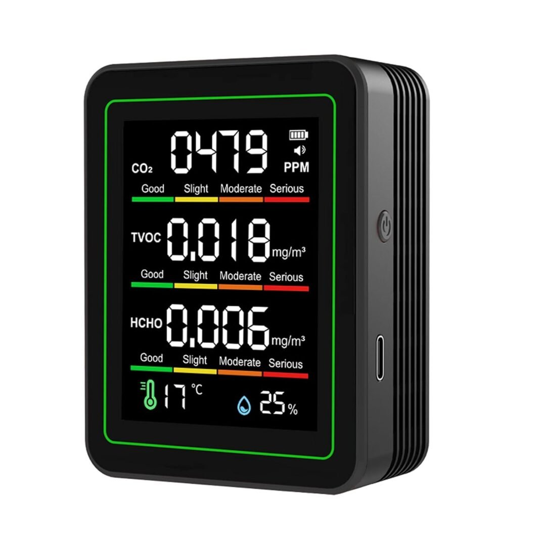 Monitor multifunción de calidad del aire: sensor infrarrojo NDIR detector de calidad del aire 5 en 1, que mide CO2, TVOC, HCHO, temperatura y humedad con precisión en tiempo actual, para un monitoreo ambiental confiable en su espacio very important.