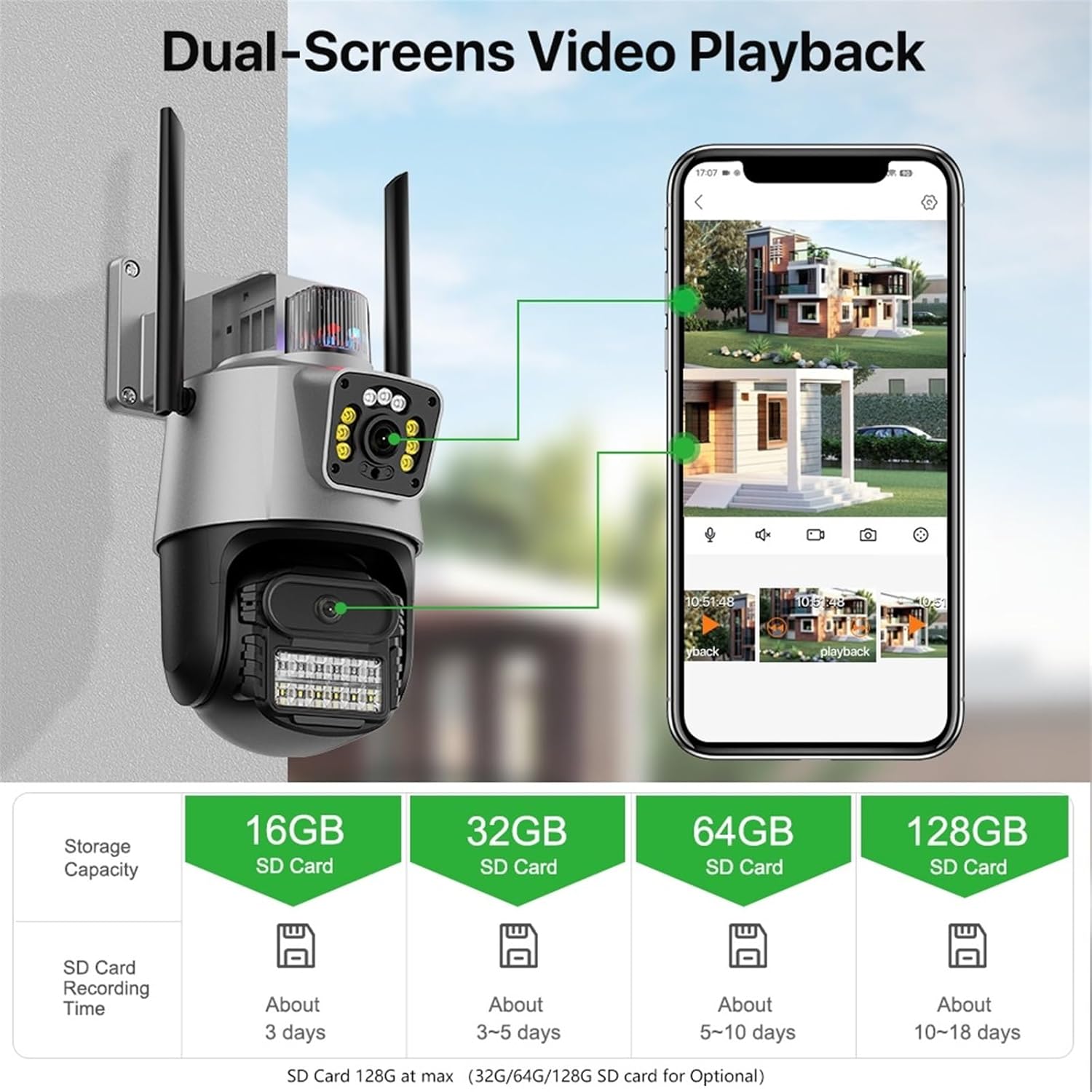 Cámara IP de 6MP 4K HD WiFi para exteriores Cámara PTZ de doble lente 4MP Alarma de vigilancia de vídeo de seguimiento automático