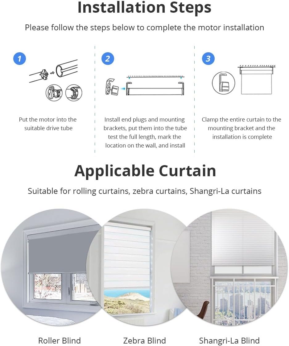 El Paquete incluido: 1 motor para tubo de 17/25/28 mm, Soportes de Montaje de Tubos y Un Mando A Distancia. Trabaja con tu propio Hub Tuya Zigbee. Puede Controlar El Motor Hacia Arriba o Hacia Abajo A Través de la Aplicacia de Voz o Tuya en Su Teléfono Móvil.