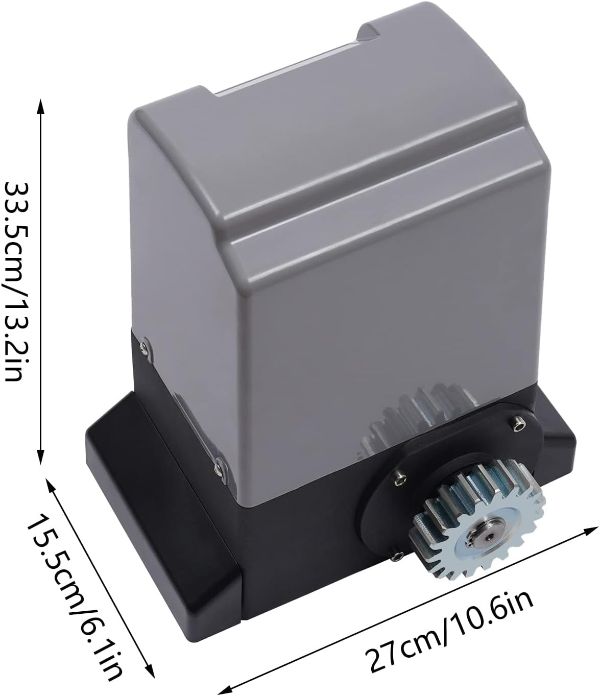 Especificación del motor de puerta corredera: Voltaje de funcionamiento del motor de garaje corredizo: 220 V/50 Hz, Corriente de funcionamiento del motor de garaje corredizo: 3 A. Velocidad del motor: 1400r/min Par de salida: Aprox. 18Nm. Velocidad de funcionamiento: 12 m/min, Entorno de trabajo: 25 ℃ -55 ℃, Resistente al agua: IP44, Capacidad de carga de la puerta del motor (máx.): 600 kg/1322 lb.