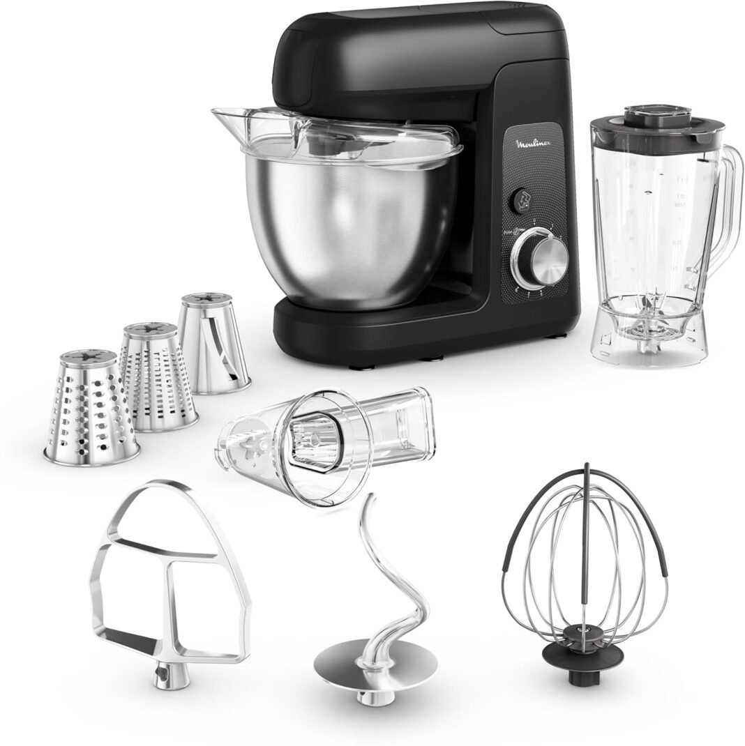 MOULINEX BAKE SOMPLAR, ROBOT PASTELERO, 1100 W, RENDIMIENTO DURADERO, KIT DE ACCESORIOS BAKGOOD, MOVIMIENTO Planetario QA522810, Negro Glama
