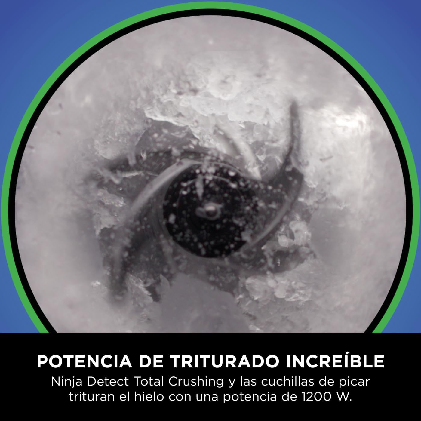 INCLUYE: Batidora Ninja Detect Energy, base de motor de 1200W, jarra con tapa de 2 L, 2 vasos individuales de 680 ml (capacidad máxima 644 ml), cuchilla de picar Complete Crushing, cuchillas Hybrid Edge, guía de inspiración y recetas.