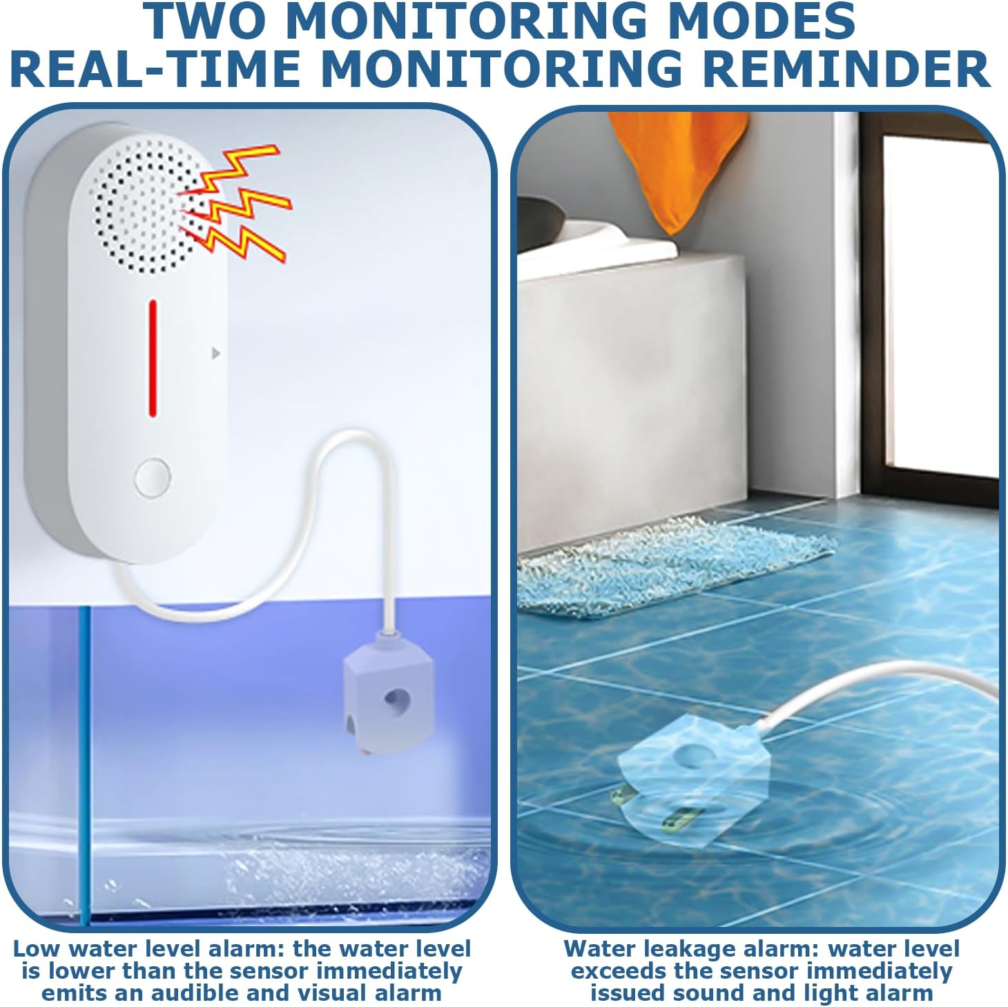 【Dispositivo multifuncional】Este innovador producto combina las funciones de un detector de agua y un sensor de nivel de agua en un solo dispositivo. En el modo estándar, funciona como un detector de agua que reacciona a las fugas de agua y activa una alarma.