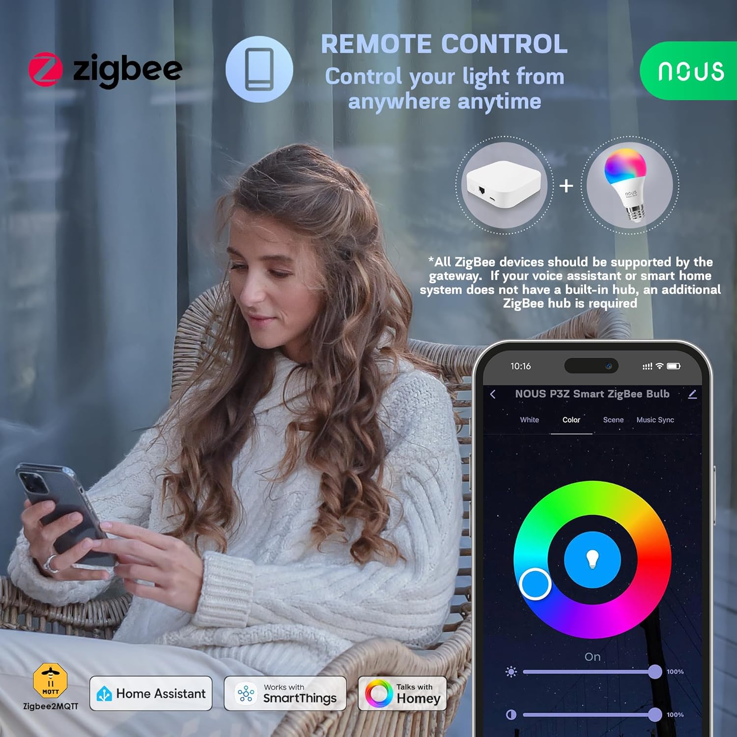 🌈 Iluminación Rgb Personalizable: Con la Bombilla Inteligente Nous P3Z, Elige Entre 16 Millones de Colores y Ajusta la Intensidad y Temperatura de coloration para Cear el Ambiente Perfecto en tu Hogar, TODO DESDE TU Smartphone O O Medián Comandos de Voz.