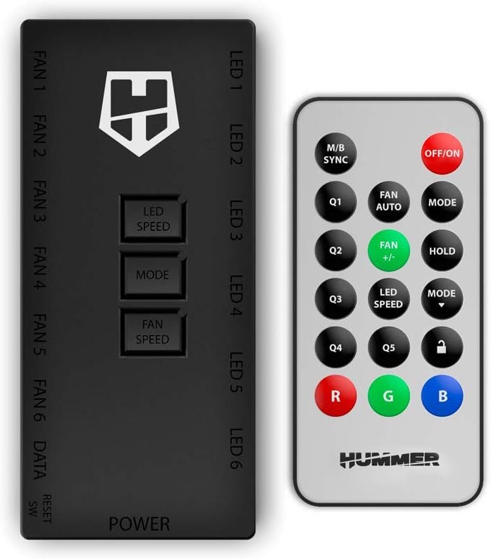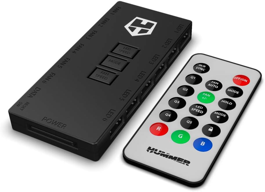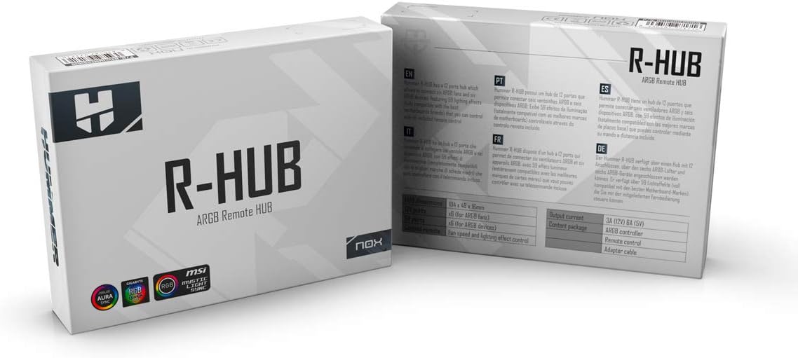 Con el controlador Nox Hummer R-HUB podrás sincronizar seis ventiladores y seis dispositivos ARGB. Este controlador con mando a distancia te permitirá common la velocidad y los efectos de iluminación de los ventiladores de tu equipo. Totalmente suitable con las mejores marcas de placas base, como las tecnologías Mystic Mild Sync de MSI, RGB Sync de GIGABYTE o Aura RGB Sync de Asus, Nox Hummer R-HUB es la gran solución para controlar la iluminación de todo tu setup al completo.