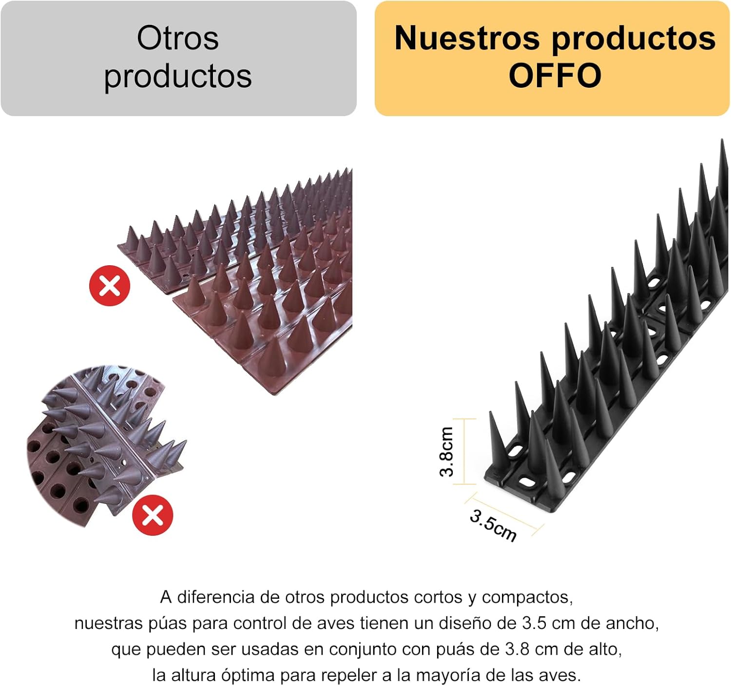 (Púas para Management de Aves de Plástico) La Longitud de Cada Púa es de 31.8 cm/12.5 Pulgadas, El Ancho es de 3.5 cm/1.37 Pulgadas, y la Altura de 3.8 cm -Púas para management de Aves Previenen Efectamento de Palomas, Cuervos o Gaviotas seas.