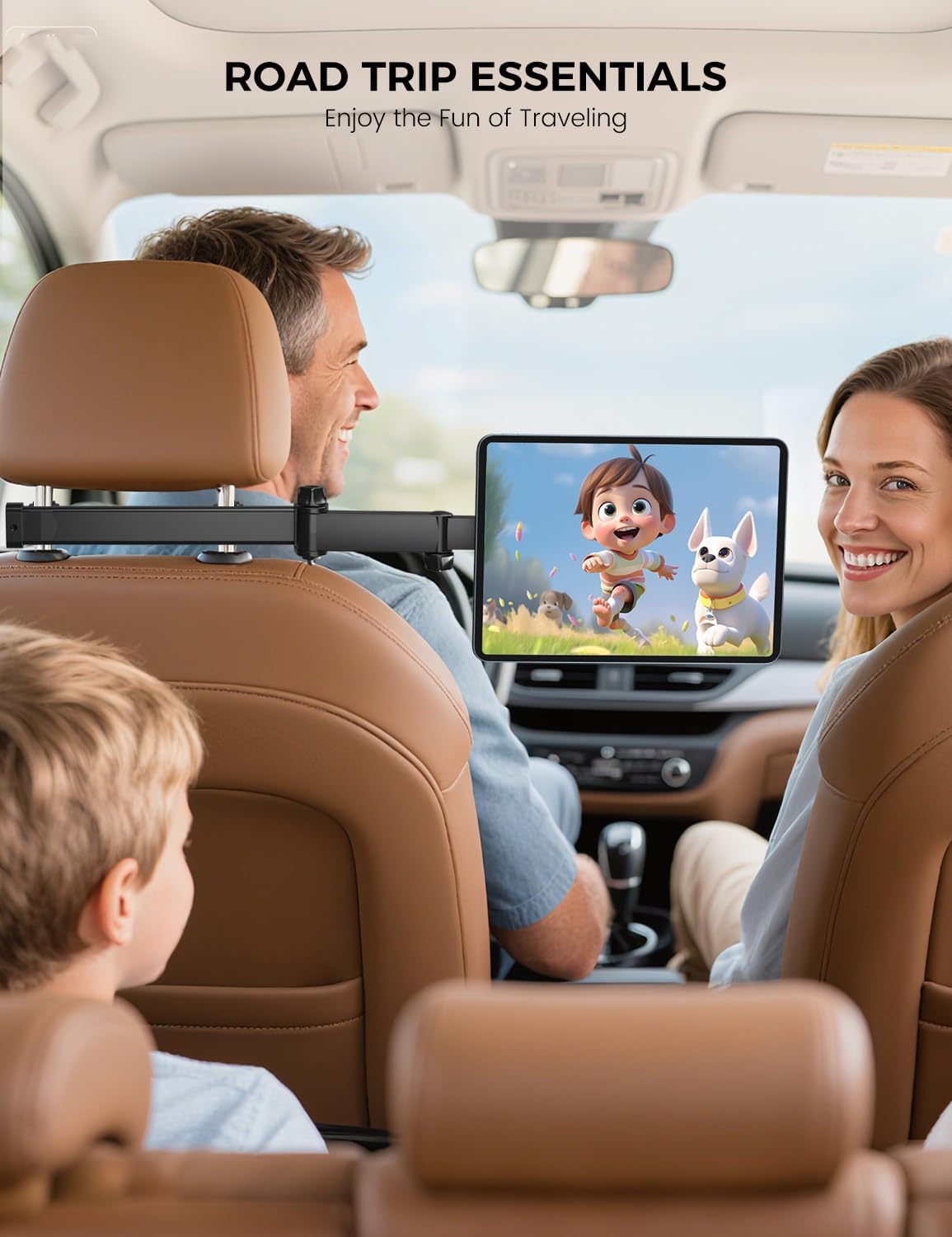 Brazo telescópico más largo: el brazo telescópico se puede extender hasta 26 cm, el soporte para tableta en el reposacabezas del automóvil para niños le permite ajustar libremente la mejor distancia entre el iPad y los ojos. Puedes mover la tableta en medio de dos asientos para que ambos pasajeros puedan mirar. Perfecto para entretenerse con familiares y amigos mientras se conduce.
