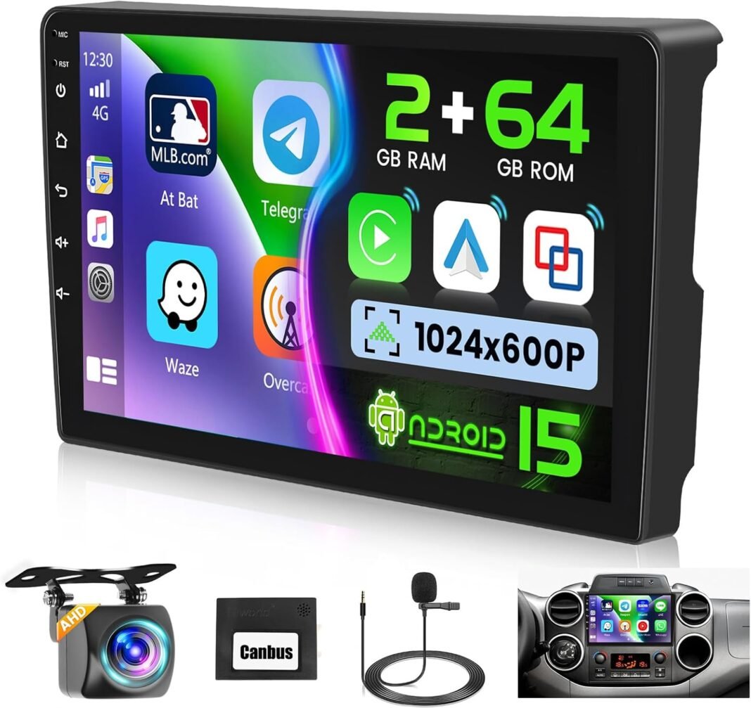 Para Citroen Android 15 Radio: La radio de coche Android 15 appropriate con Citroen Berlingo B9 2008-2017, con pantalla táctil HD 1080P de 9 pulgadas, 2 GB de RAM, 64 GB de ROM, carga USB rápida, viene con un marco y adaptadores ISO necesarios para garantizar una perfecta compatibilidad con el tablero authentic de su vehiculo
