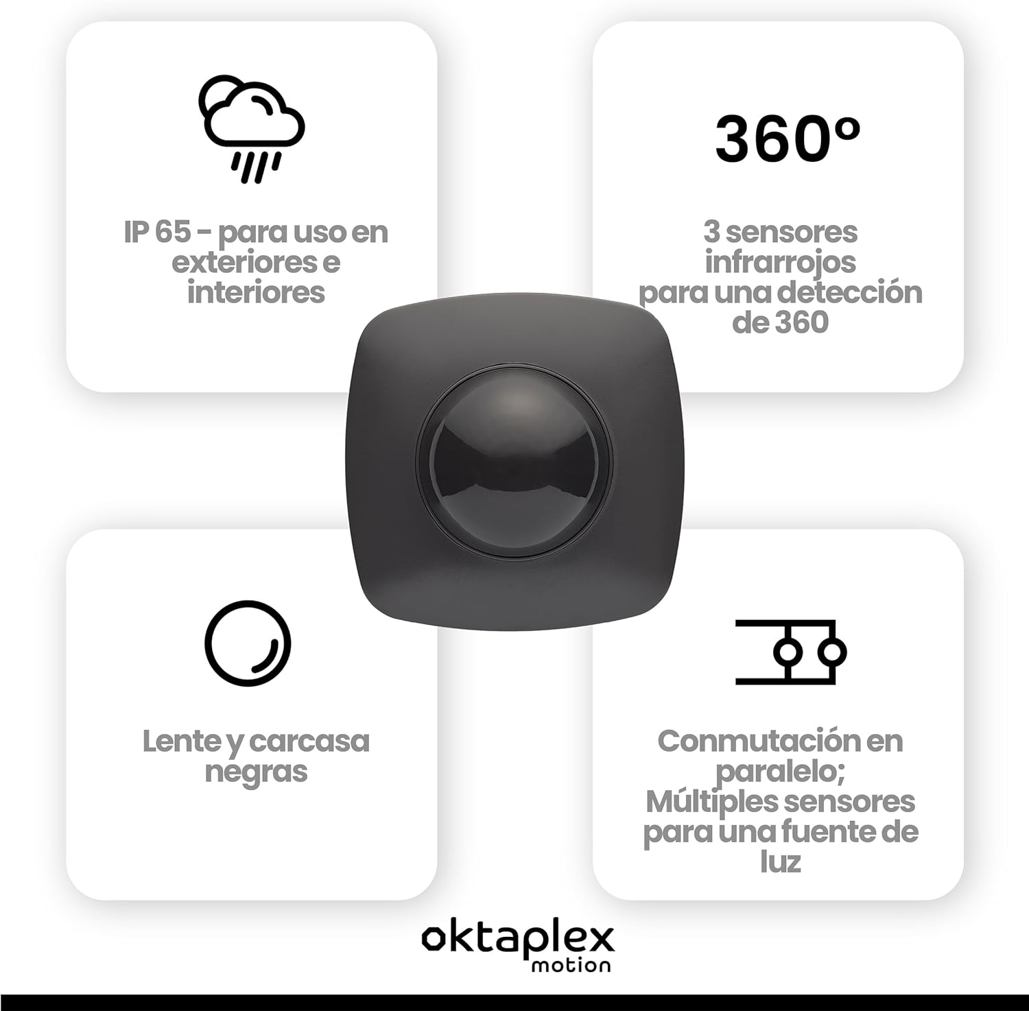 Oktaplex Tim Detector de Presencia Detector de Movimiento 360 ° Exterior IP65 Pir Antracita 230V