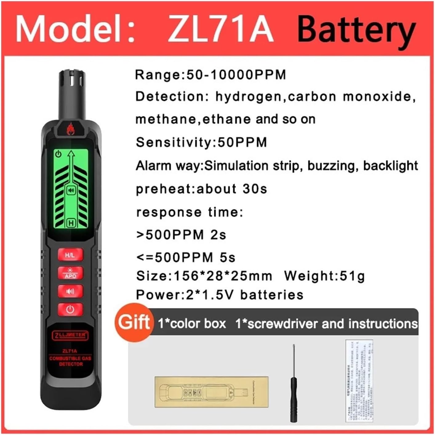 Detección de alta precisión. Este detector de fuel ofrece un rango de alta precisión de 50 a ten 000 ppm, lo que garantiza una medición precisa de gases combustibles.