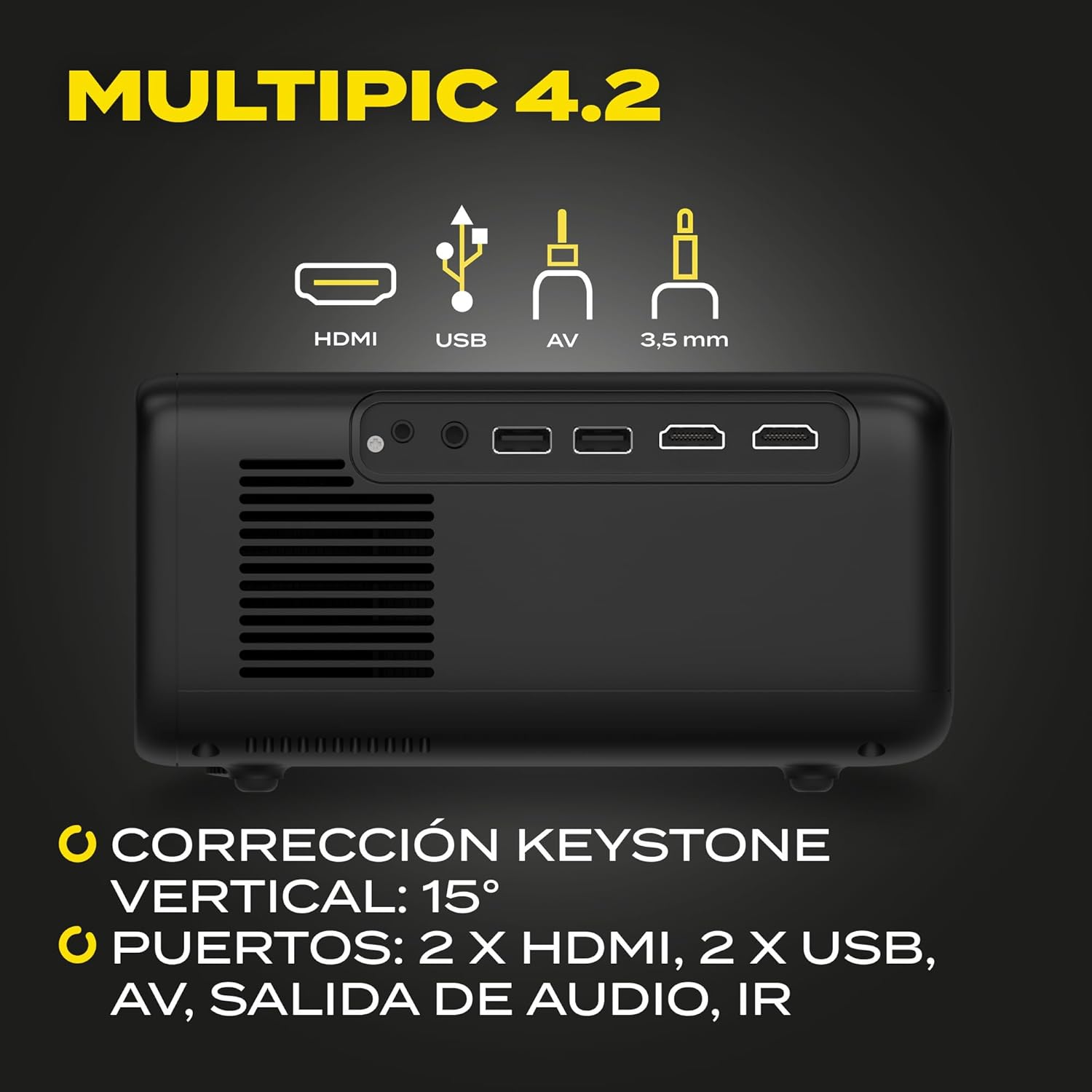 Multipic 4.2: Proyector de Alta Definicion Full HD. El Brillo de la Lente de 4 Lentes de 4500 Lúmenes, La Lámpara de 110 W y El Alto Contraste de 2500: 1 Proporcionan la reproducción Reproducción completa de los colores Originales