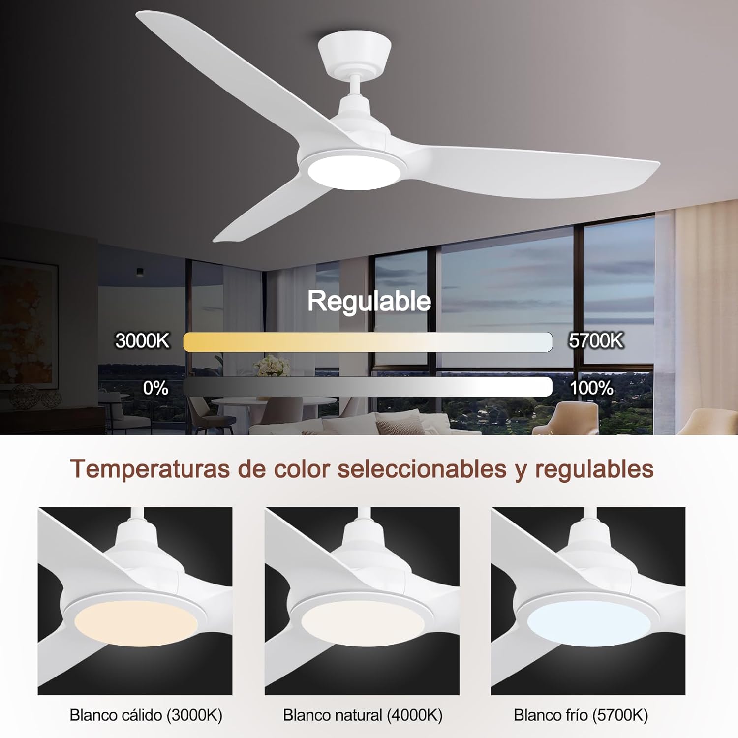 Motor Silencioso y Reversible: Nuestro ventilador de techo de 132 cm cuenta con un motor DC de cobre 100% de alta calidad que garantiza un funcionamiento extremely silencioso con menos de 30 decibelios de ruido. Es perfecto para quienes tienen el sueño ligero, sin zumbidos ni vibraciones. El motor reversible y las velocidades variables ofrecen comodidad durante todo el año, manteniéndote fresco en verano y cálido en invierno.