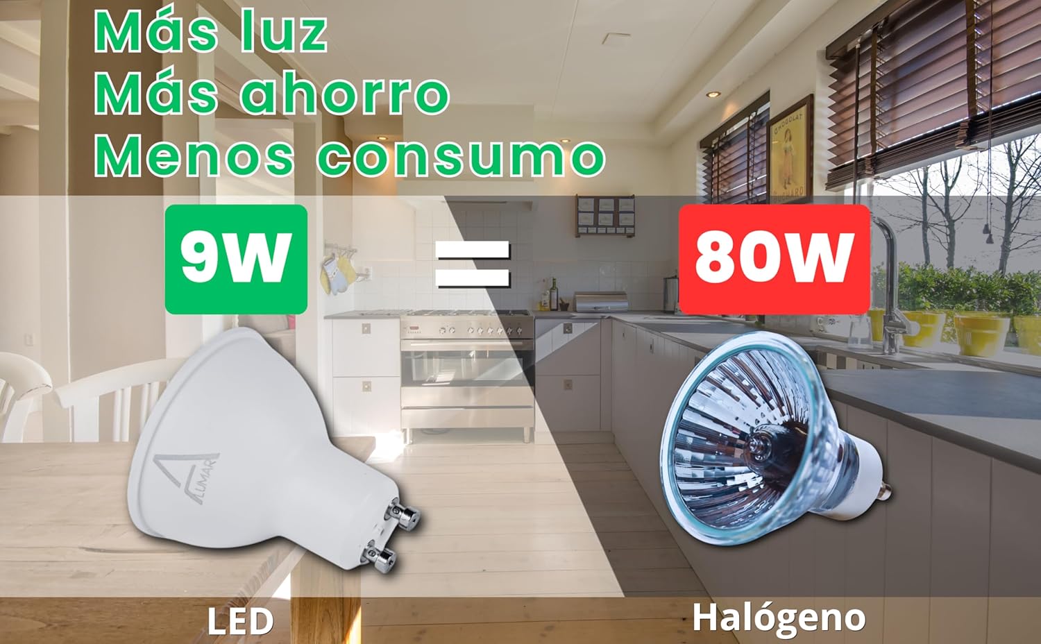 Eficientes y de bajo consumo: Con 9W de potencia, estas bombillas LED GU10 son equivalentes a las bombillas incandescentes de 80W, lo que te permite ahorrar energía y dinero.