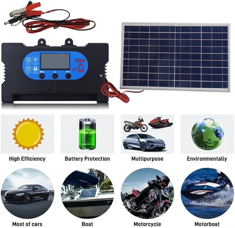 Package de Panel Photo voltaic Monocristalino de 10 W, 12 V/18 V Con Controlador de Carga Photo voltaic, Con Controlador y Clip para Barco, RV, Batería de Ciclo Profundo, Abridor de Puerta de Gallinero