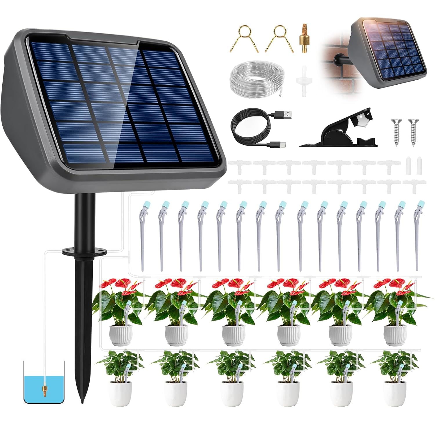 Package de Riego por Goteo Automático Energía Photo voltaic, 2 en 1 Riego Sistema Photo voltaic Automático con Boquilla Ajustable Aspersor Pulverizador para Plantas en Patio Balcón Casa Verde Macetas, USB Recargable (A)