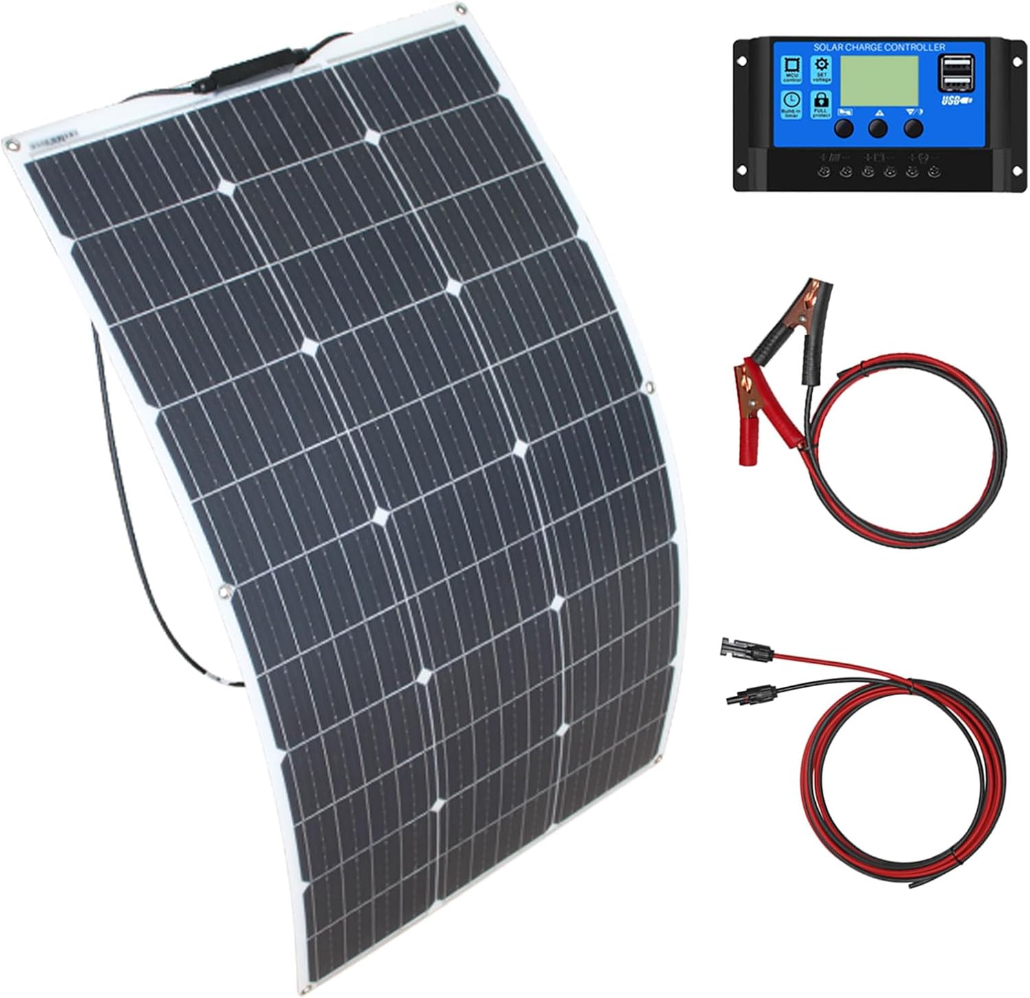 【Package completo】: El equipment incluye un panel photo voltaic 100w, sin management carga pwm 10a, pinzas de batería y cables solares. El Controlador de la protección del recurso completo contra sobrecargas y cortocircuitos.
