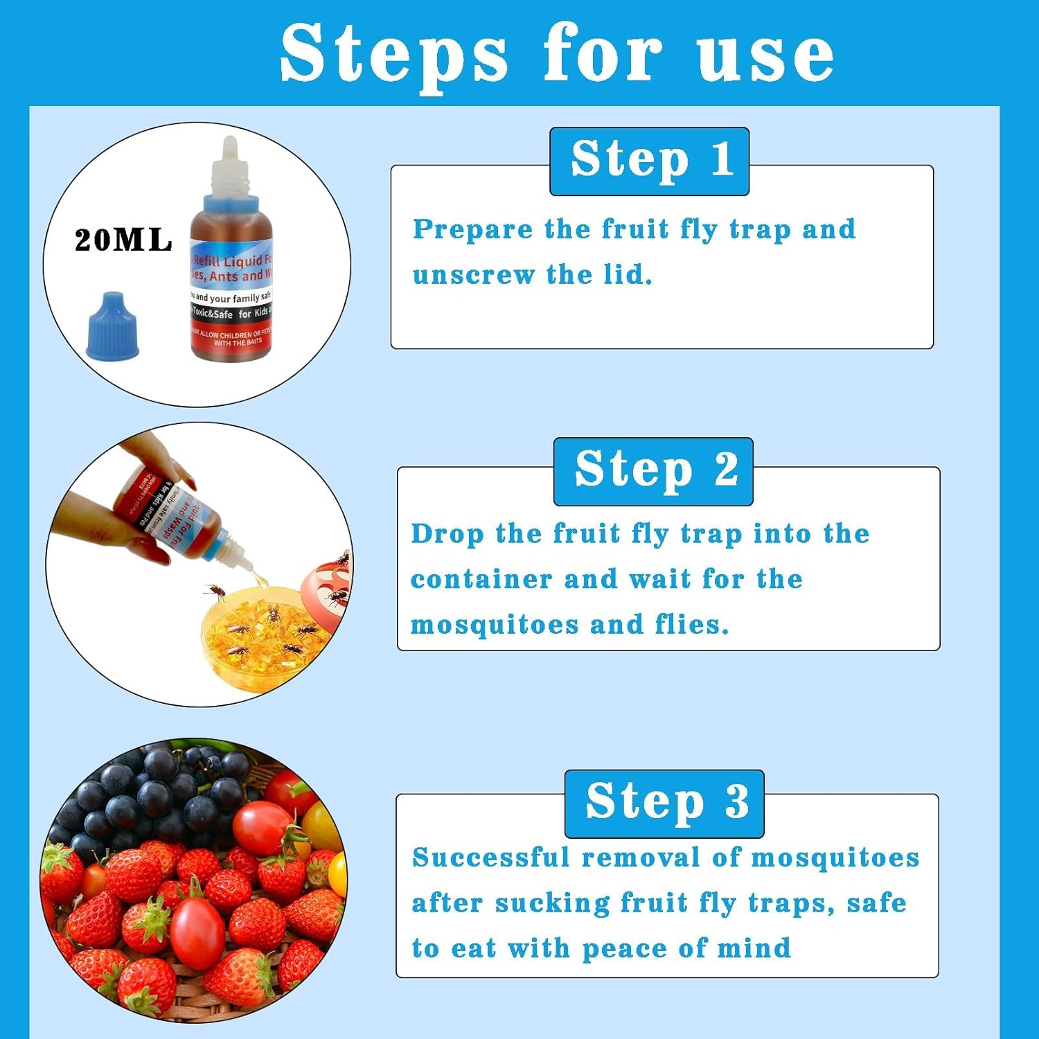 Contiene 2 Botellas de Trampa, Cadada Botella Tiene 20ml. Fabricado Con Materiales no Tóxicos y respetuosos con el medio ambiente, con ingredientes seguros que no causaarán problema a los niños ni a lascotas.