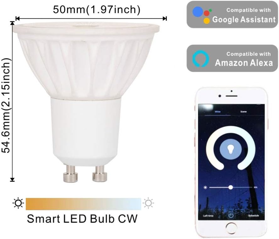 Paquete de 4 bombillas LED WiFi Good Alexa GU10, 5 W regulables, blanco cálido y blanco frío (2700-6500 Ok), appropriate con Alexa, Google Assistant, teléfono inteligente