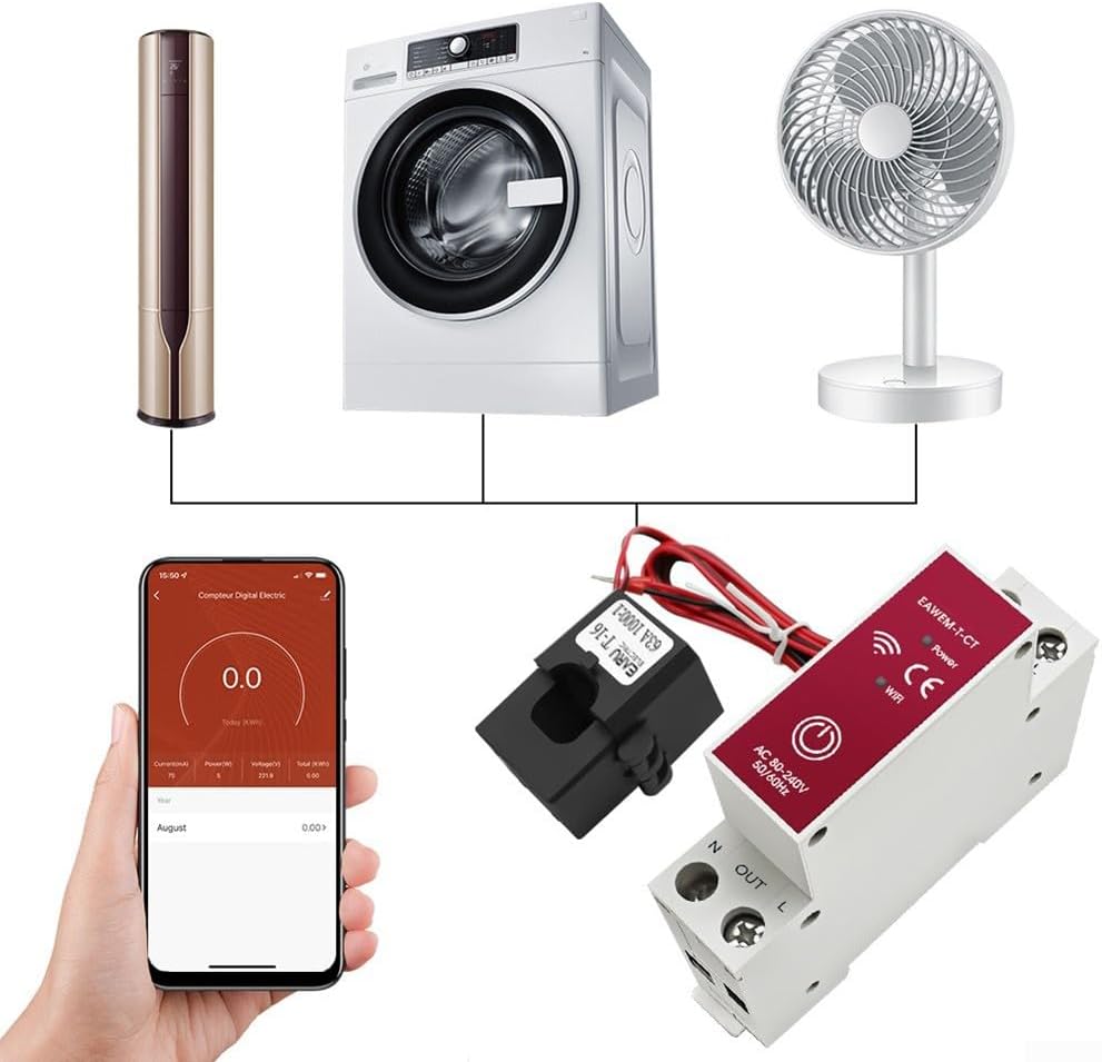 Medidor de energía inteligente Tuya con abrazadera de 63 A: este medidor de energía es suitable con la aplicación For Tuya for Good Life y viene con una abrazadera de 63 A. Puede medir con precisión la energía consumida y proporcionar estadísticas eléctricas detalladas.