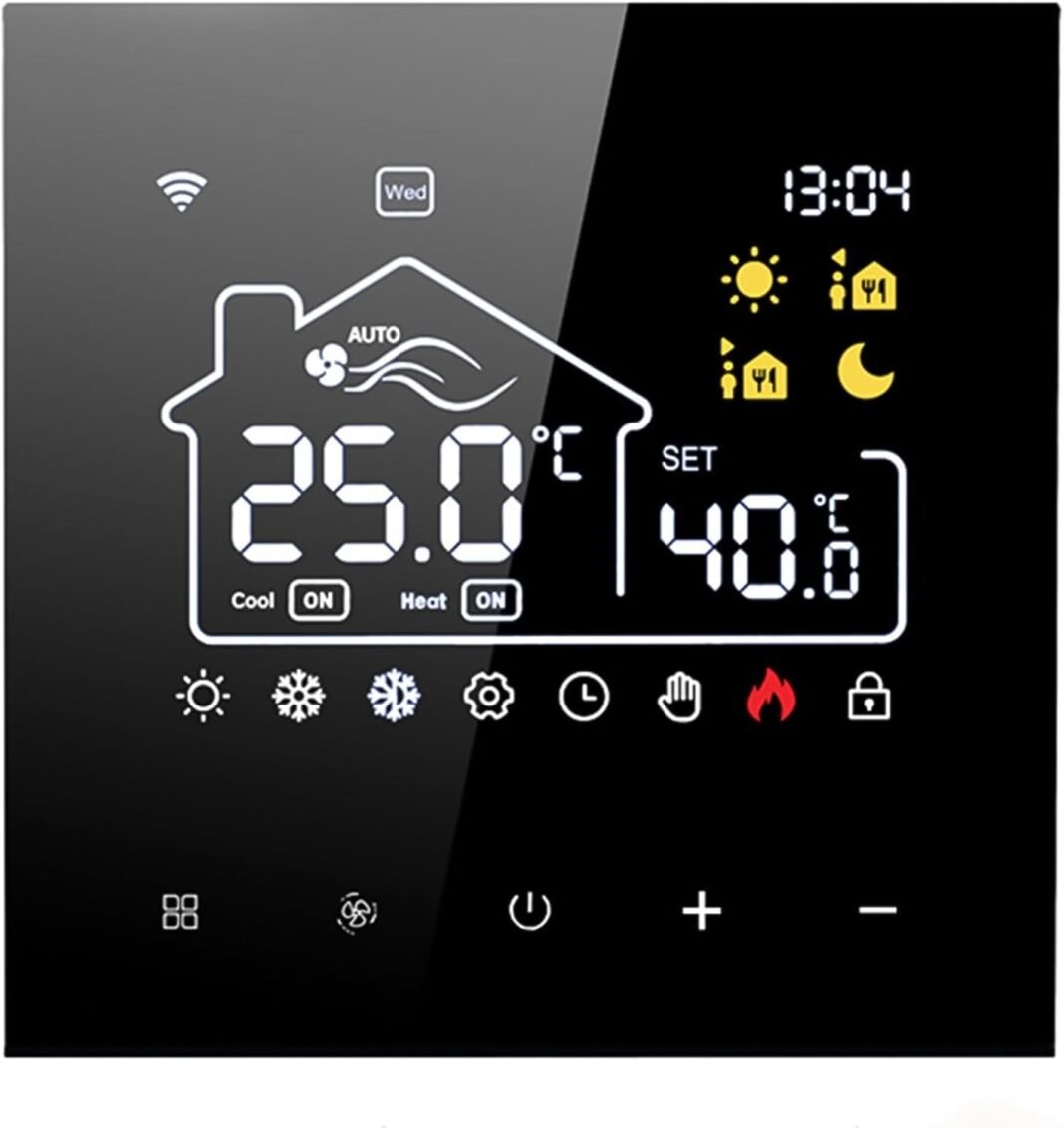 Función de Almacenamiento y Uso: No te preocupes por Fallos de Energía, Almacenamiento de Datos Cuando Fallo de Energía. Con Bloqueo Infantil, La Función de Bloqueo del Teclado Está Diseñada para Evitar el Mal Uso por parte de los Niños. Adecuado Para Aire Acondicado Central, Calefacción por suelo Radiante. Perfecto para El Hogar, Oficina, Centro Comercial, Lodge, and many others.