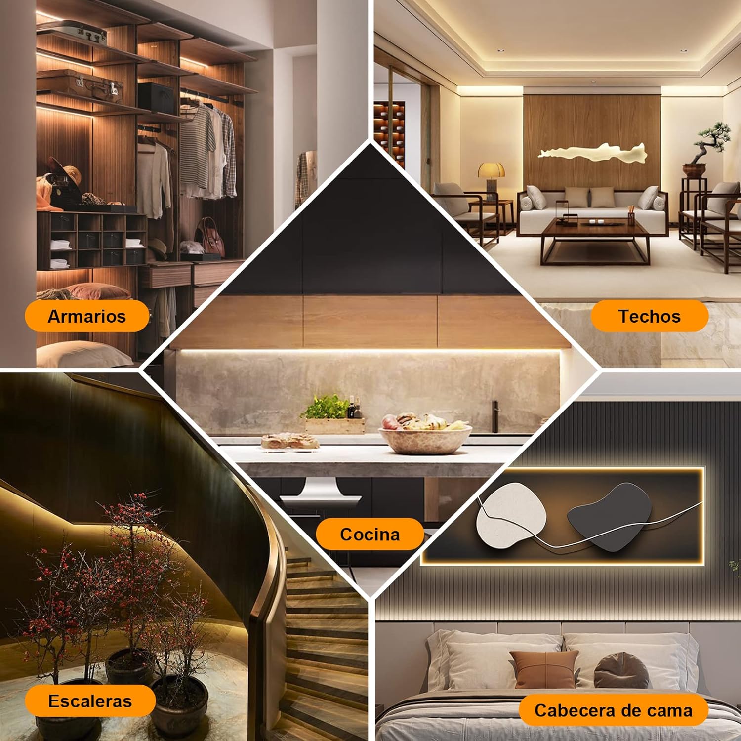 【Actualización Tecnológica】Después de muchas innovaciones por parte de nuestro equipo, finalmente presentamos estas tiras led con un ancho de sólo 9 mm, que es más pequeña y más brillante que la tradicional tira led con un aumento de brillo, y es tan suave que puede Ser DIY doblado en cualquier forma que desee, recortable, con marcas recortables cada 10cm.