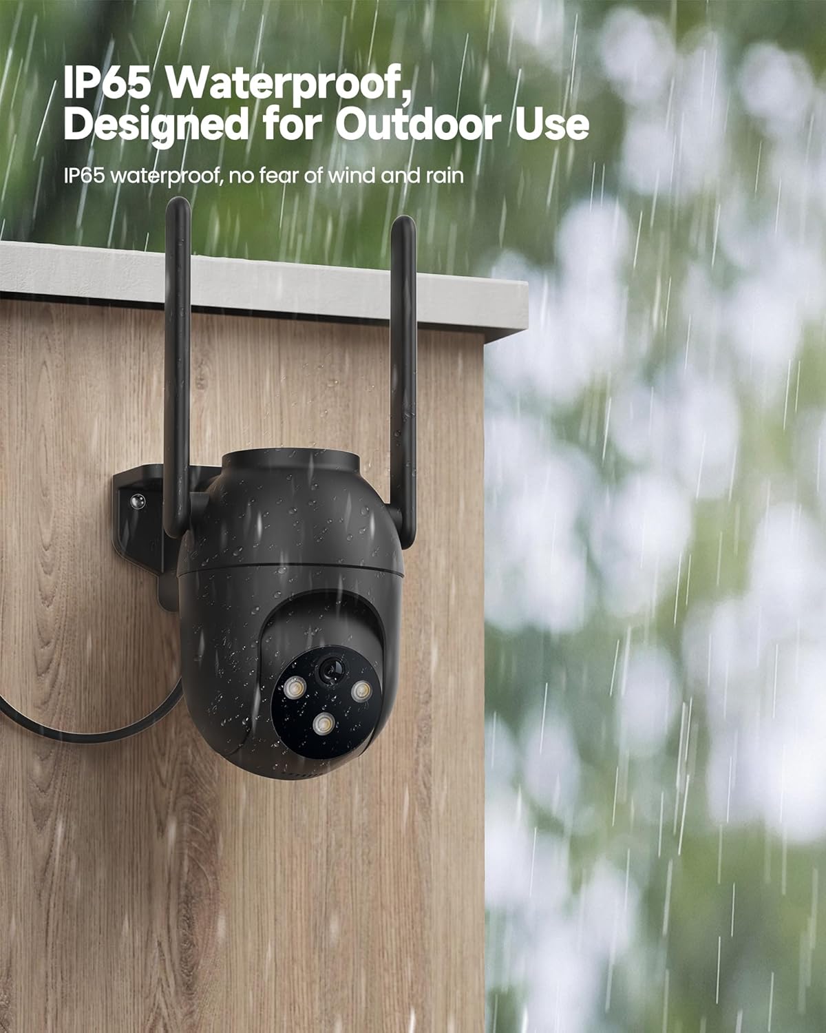 【Impermeabilización IP65】La cámara exterior está diseñada para entornos difíciles. Con la clasificación IP65 a prueba de agua, puede seguir trabajando en cualquier clima, 365 días de guardia en todas partes. La cámara grabará el evento a la tarjeta SD y la nube para que pueda ver el vídeo reciente en cualquier momento. Ofrecemos un mes de devolución y un año de garantía. Para obtener más ayuda, siempre puede ponerse en contacto con nosotros para obtener ayuda.