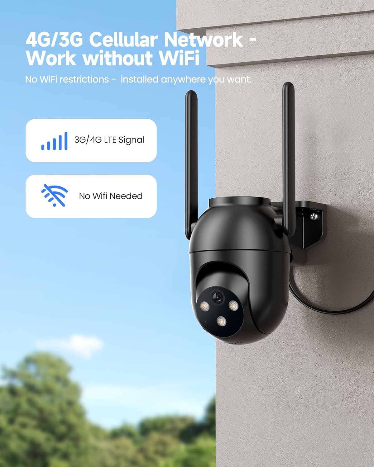 【Crimson 4G】La cámara de vigilancia mantiene una transmisión de datos estable a través de la tarjeta SIM 4G. La cámara mantendrá un ojo en la seguridad de su propiedad. La cámara es resistente a la intemperie con grado de protección IP65 para una variedad de entornos al aire libre. Por ejemplo, lugares remotos como granjas, ranchos, obras de construcción, cabañas, casas de vacaciones y áreas silvestres. Fácil de instalar y sencillo de manejar.
