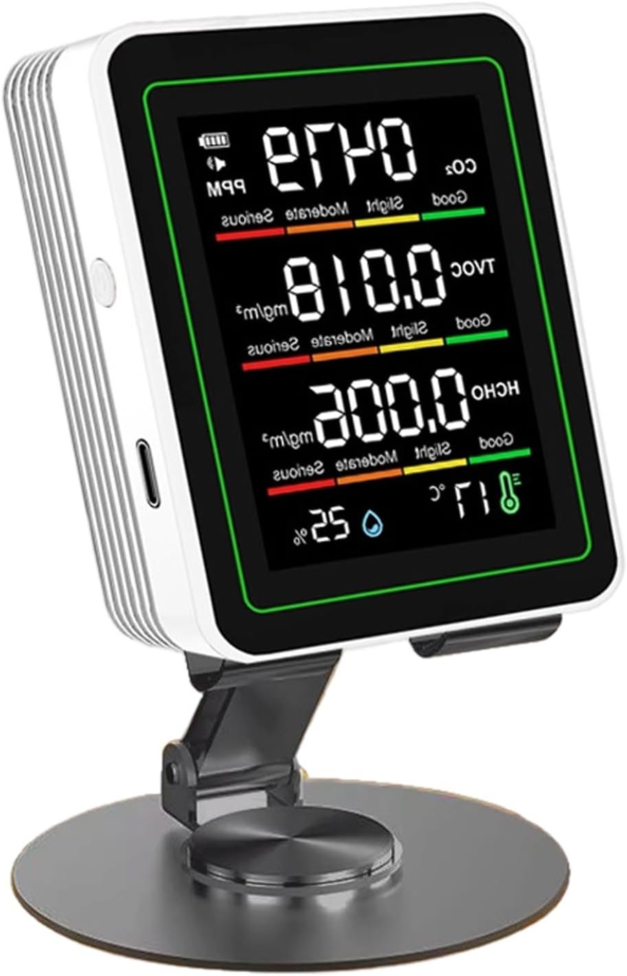 Monitorea cinco parámetros críticos del aire (CO2, TVOC, HCHO, temperatura) inmediatamente con este pequeño probador de aire 5 en 1 fácil de transportar para un análisis completo del entorno inside.