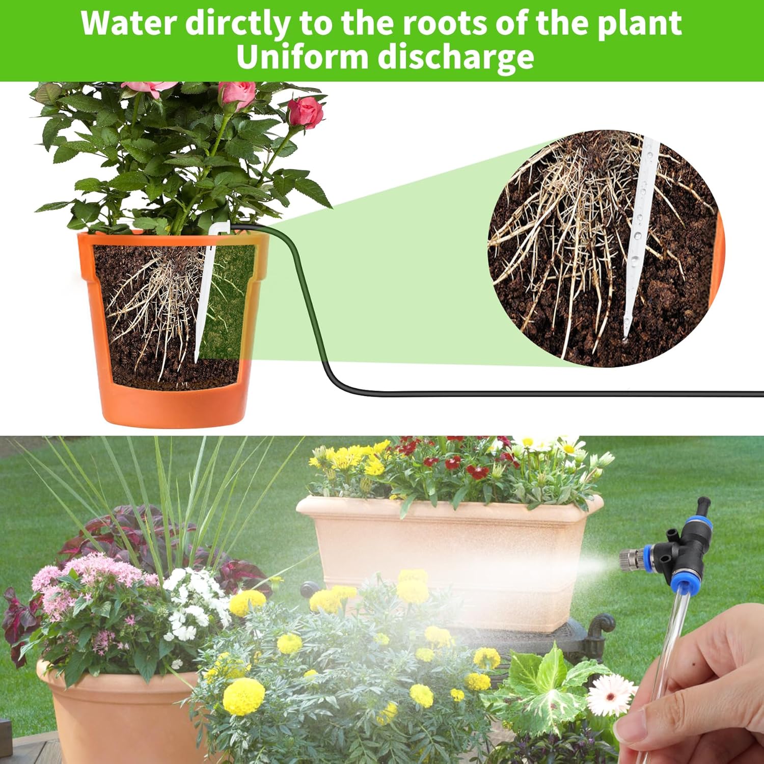 【Sistema de Riego por Aspersión】 Además del Método Tradicional de Riego por GOTEO, Hemos Mejorado el Nuevo Sistema de Riego por Aspersiónico, Que Proporciona una Nueva Opcioón para el Riego y la Refrigeració de Las Plantas. Consejos práctico: 1, El Riego por Aspersiónico y por GOTEO No se Pueden Hacer al Mismo Tiempo, por favor Elija Uno de los Métodos de Rigo de Acuerdo A Sus Propesidades de Instalación y Uso. 2, El Riego por Asperio Debe utilizar una manguera Transparente.