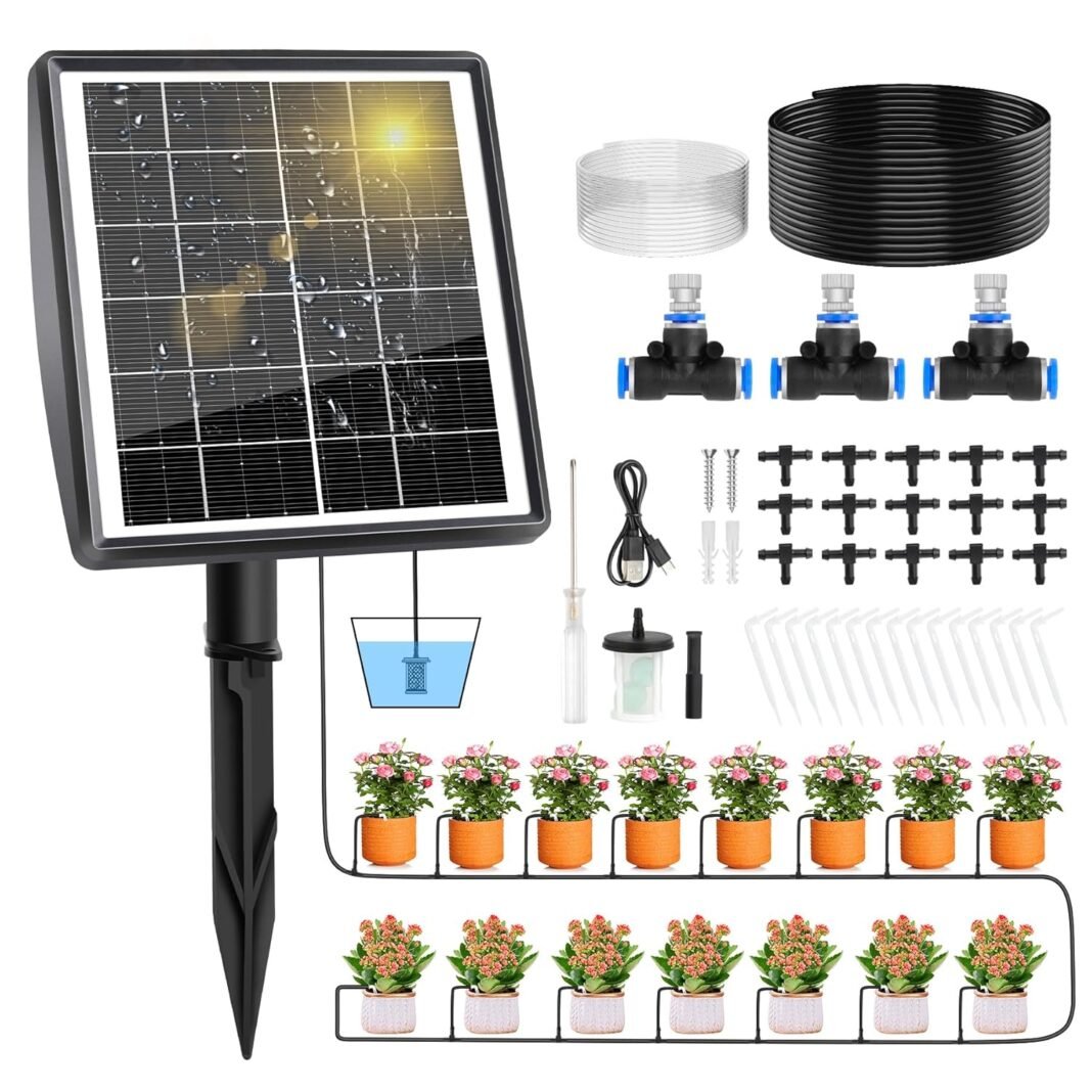 【Fácil de instalar y utilizar】 el sistema de riego por goteo photo voltaic es fácil de instalar, puede instalarlo según el nÚmero de enchufes que necesita, no sean necesarios necesitanos para su su instalación. NOTA: 1, El Riego por GOTEO Photo voltaic Necesita Estar A 1M Por Encima de la Línea de Nivel de Agua. 2, CUANDO UTILICE ESTE PROCTO PRIMERA VEZ, SE RECOMENDA CARGARLO CON CABLE DE CARGA O PONER EL PROCTO BAJO LA LUZ DEL SOL SOL PARA CARGARO