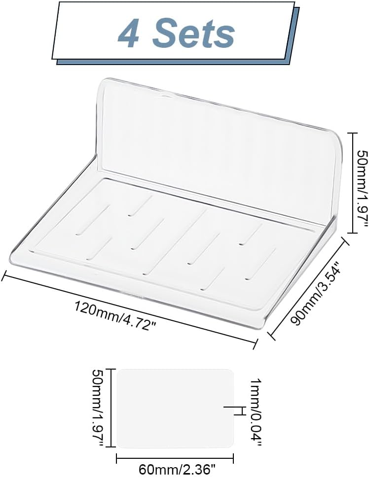 Tamaño del producto: los estantes de exhibición miden 9 x 12 x 5 cm, adhesivo: 40 x 60 x 1 mm. Tamaño adecuado para usar, haga que los accesorios se muestren bien en la pared con los estantes flotantes transparentes, ayude a maximizar su espacio de almacenamiento.