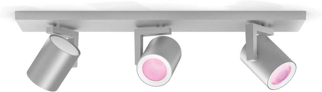 Philips Hue – Lámpara LED inteligente Philips Hue Argenta, 5.7W-350 lúmenes, Luz Blanca y de Colores, Appropriate con Alexa y Google House, 3 Focos LED, Aluminio. Resalta tus objetos favoritos con Hue Argenta, que ofrece un precioso haz de luz en cualquier tonalidad blanca y más de 16 millones de colores. Contrólalo al instante por Bluetooth en una habitación o emparéjalo con un puente Hue para disfrutar de toda una variedad de funciones.