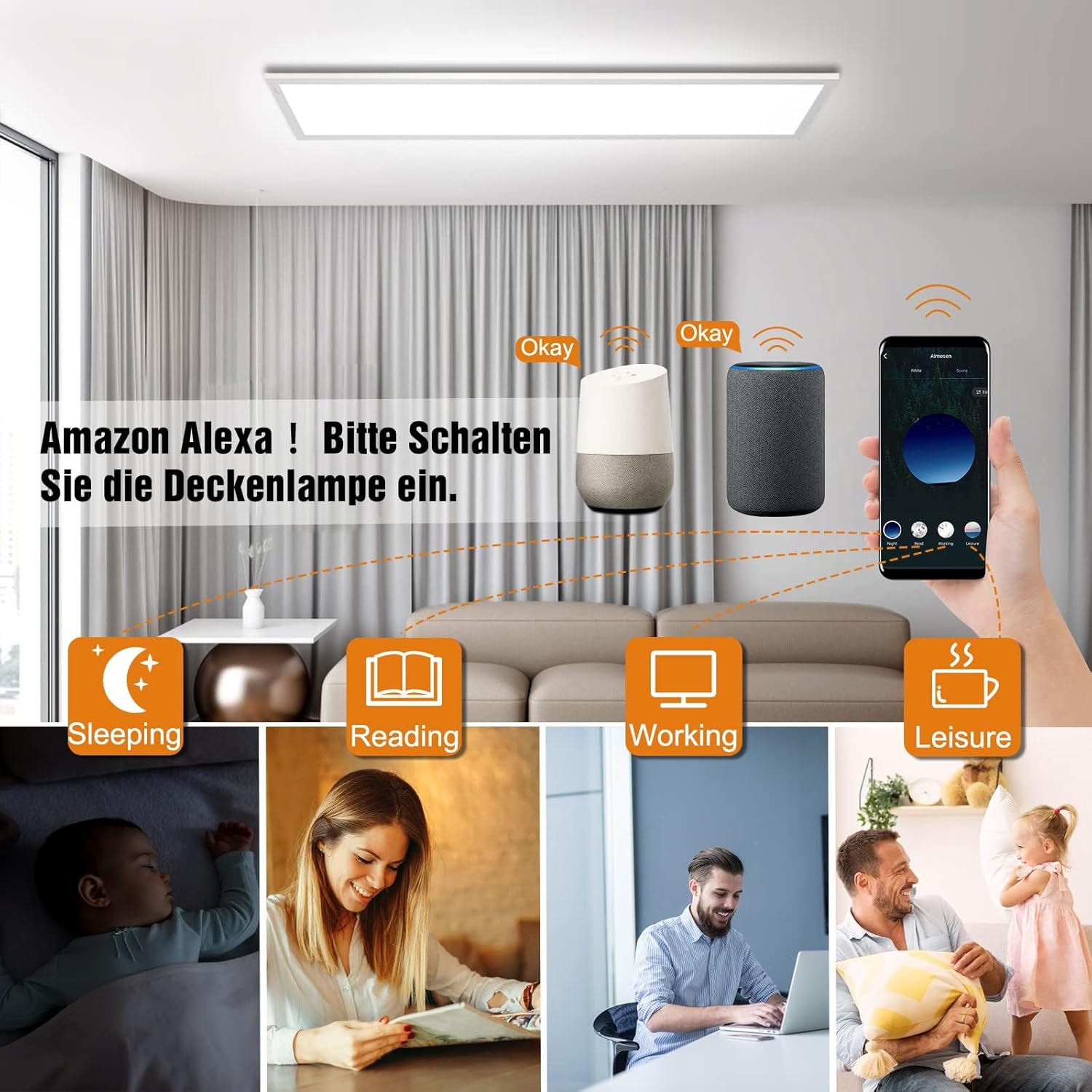 📱Agrupación de Grandes Paneles de Luz📱 Esta lámpara mide 120 x 30 cm, el panel de luz ampliado proporciona una iluminación muy brillante para espacios grandes como su habitación, sala de estar, estudio o garaje. Con el management remoto, puede agrupar y controlar varias lámparas de área al mismo tiempo.