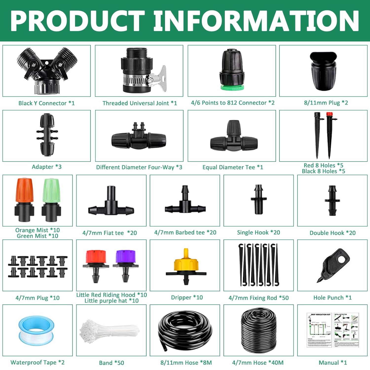 ❤【 fácil de instalar】 el sistema de riego por goteo es fácil de instalar. No se requirió las habilidadas de excavación ni plomería, simplementa corte la manguera al tamaña deseado, inserta el conector de púas y el gotero, abra el grifo y comience a Gotear. Usted es libre de diseño su sistema de pulverizació según susdades. (NOTA: La Manguera se Puede Sumergir en Agua Caliente Durante Unos 10 SEgundos, Lo Que Hace que la Instalacia del mar más fácil y resistente).