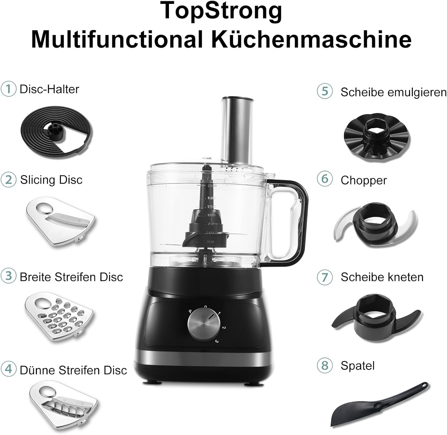 Procesador de Alimentos 6 en 1: Gran Potencia de 800W 6-EN-1 Procesador Alimentos Es Perfecto para la Mayoría de sus Necesidades de Preparación de Alimentos, Diseñado para Picar, Rebanar, Triturar, Triturado Gruesso, Mezclar y AmaSar La Masa, Topstrong Meals Processor ProporcionOror, Garce de Guesso, Gueso, GreuSo, Gueso, GarcionAn Una Garcionan versátiles para para satisfacer sus necesidades diarias de cocina, también es adecuado para hacer alimentos nutritivos para bebés, tazón y los archivos adjuntos son fáciles de lima con cepillo de bonificación, apto paravavajillas libera las -lasos de lás