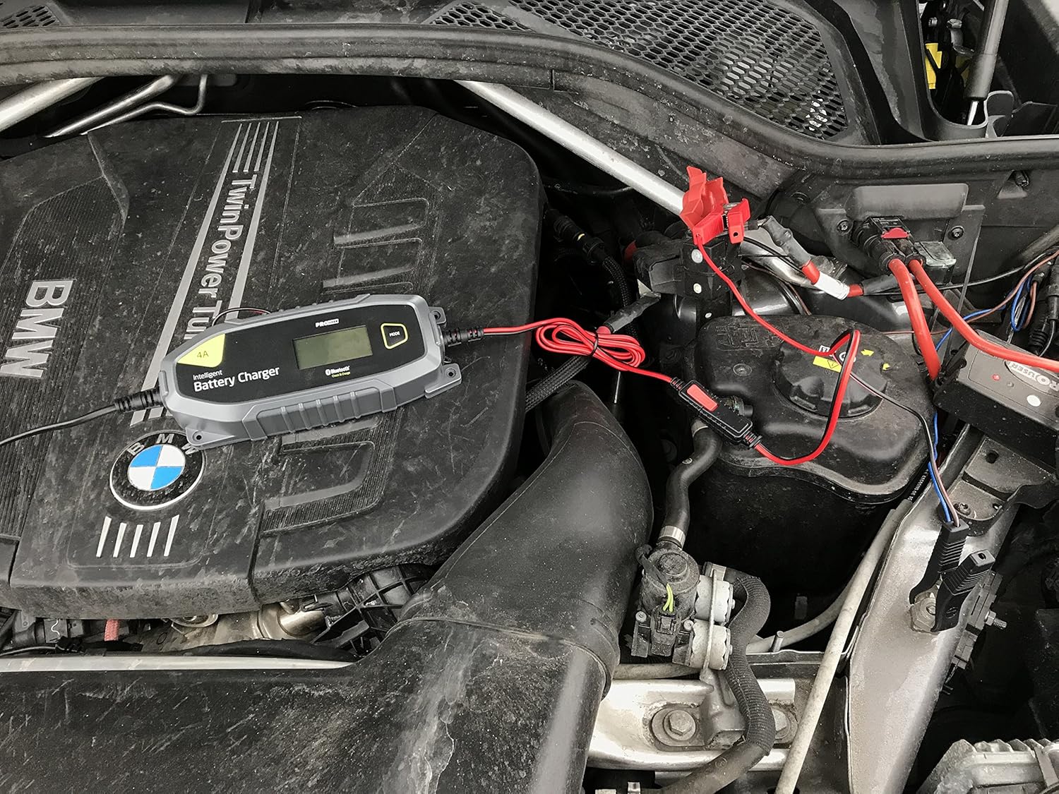 Bluetooth 4 Amp Cargador de baterías inteligente para baterías de plomo y litio con terminales y anillos 6V y 12V